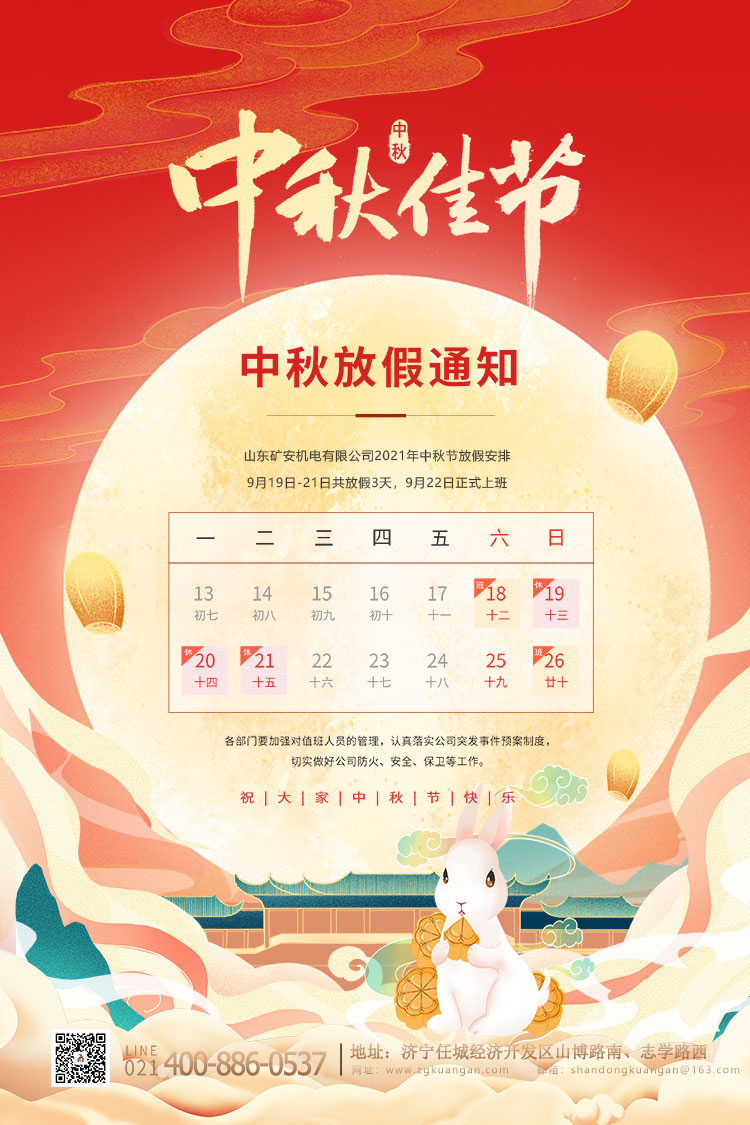 根據《國務院辦公廳關于2021年部分節假日安排的通知》,結合我公司的實際情況,現將我公司中秋節放假具體安排如下: