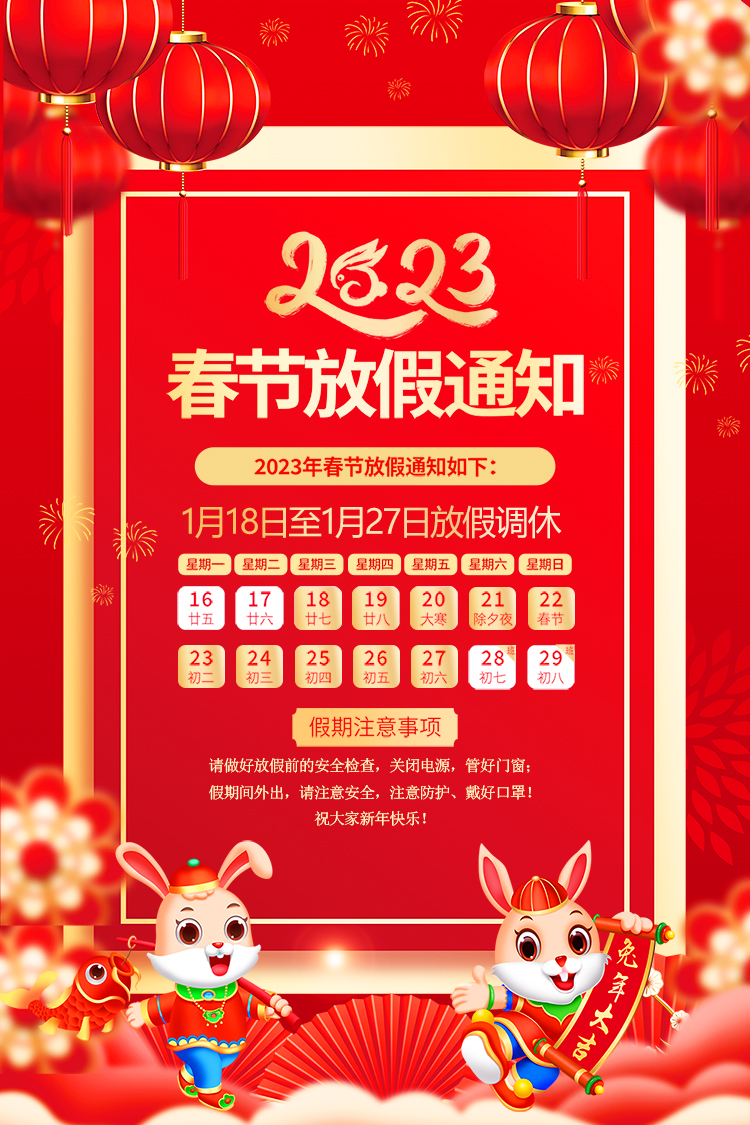山東礦安機電有限公司2023年春節放假通知