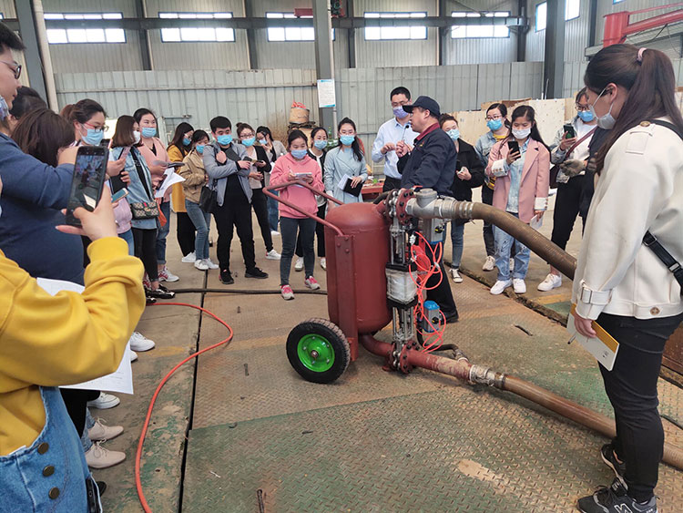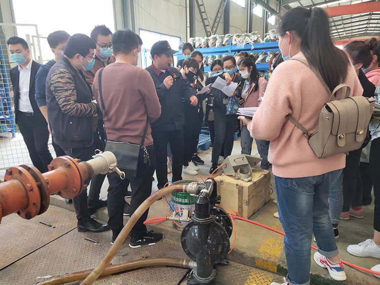 整個(gè)培訓(xùn)分為三個(gè)部分,首先,程廠長(zhǎng)在礦安車間給大家展示了公司新研制生產(chǎn)的清淤排污泵,進(jìn)行了現(xiàn)場(chǎng)試驗(yàn)及講解;詳細(xì)介紹了隔膜泵及自動(dòng)排水裝置;并對(duì)減速機(jī)部件及注意事項(xiàng)進(jìn)行了簡(jiǎn)單的介紹。